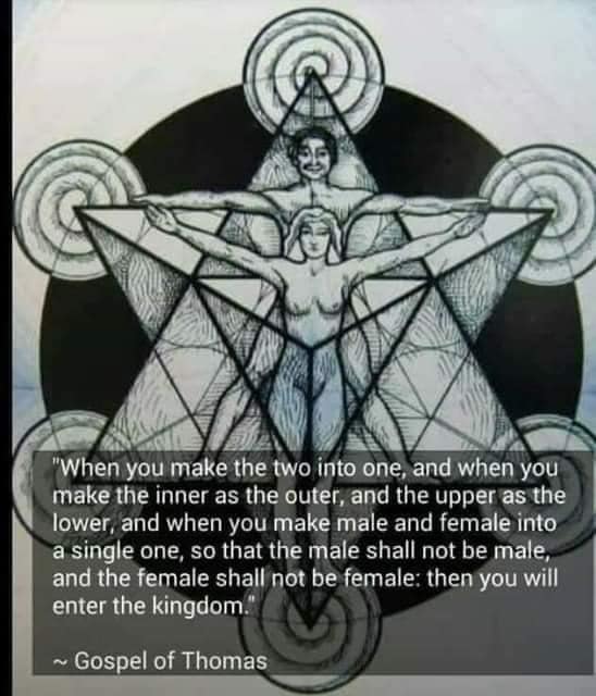 While Woman and her natural Intuitive Nature possess all that the Man and his natural Linear Nature needs to develop to his highest potential -- and Man has all the Woman needs to develop to her highest potential -- the vast majority of male/female unions are little more then sexually driven pseudo-marriages. In order to enter into a True Marriage that is the expression of the Natural Laws of God, the man and woman must become an integral part of their spouse -- both of whom are committed and willing to share their unique abilities for the benefit of their Spouse. Why? Because as their Spouse evolves and arises out of their organic condition as a Mental-Sperm and Mental-Ovum, can the rapid process of Mental-Expansion and Spiritual-Deepening be brought about. And this Fact of Life was declared and removed from the Gospels in the suppression of the teaching when the disciples posed the question to Jesus: "Shall we then, as children, enter the kingdom?" And "...Jesus said to them, When you make the two one, and when you make the inside like the outside and the outside like the inside, and the above like the below, and when you make the male and the female one and the same, so that the male not be male nor the female, female; ...then will you enter the kingdom." How does the male and the female become "...one and the same, so that the male not be male nor the female, female" -- which is necessary to "...enter the kingdom" This ultra-important teaching is not only found in many early scriptures, but also in the Second Epistle of Clement which was sent to a first century congregation of Christians (see Epistle Of Clement http://GospelOfThomas.Nazirene.org#EpistleOfClement ). The fact that this teaching was discussed in an epistle that was sent and received by a first century congregation -- and would be rejected today -- demonstrates that the modern Church has virtually nothing in common with the original Gospel teachings. The Gospel states: "For this reason a man will leave his father and mother and be united to his wife, and the two will become one flesh. So they are no longer two, but one flesh" (Matt 19:5-6) -- and it is this condition of Mind and Being that is necessary to achieve the next stage of birth and to "...enter the kingdom". When Jesus said these words he was not making reference to a common cultural marriages -- but rather, a highly developed Consecrated Spiritual Marriage where the two come together to develop their Spouse to their Highest Potential of Mind and Spirit in the Oneness of the Union of Opposites. That Jesus was referencing a Mental/Spiritual Marriage Union, is confirmed when Jesus warned: "But I tell you that anyone who looks at a woman lustfully has already committed adultery with her in his heart" (Matt 5:28). When a man looks at a woman with lust, he is expelling his Generative Power that should belong exclusively to his wife. And this violation of the Natural Laws that diminish the spiritual integrity of the Marriage Union, inhibits the Natural Laws that bring about the fulfillment of the teaching: "...when you make the male and the female one and the same, so that the male not be male nor the female, female". Unless the male and female halves are united and the Full Wholeness of Mind is achieved, the man and woman will fail to reunite and develop -- i.e., again quoting the Gospel of Philip: “When Eve was still with Adam, death did not exist. When she was separated from him, death came into being. If he enters again and attains his former self, death will be no more”.